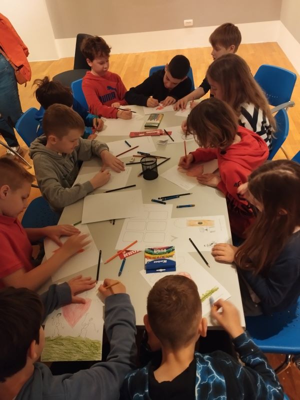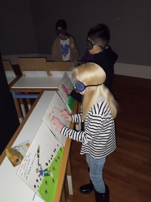 In complete darkness, the children listened to the story “I Am a Child, Too” by Miranda Kokotović and then expressed their emotional reactions through drawings. In an effort to better comprehend the world of blind children, the students read a tactile picture book created by preschool children from the "Hlapich the Apprentice" kindergarten while wearing blindfolds.
